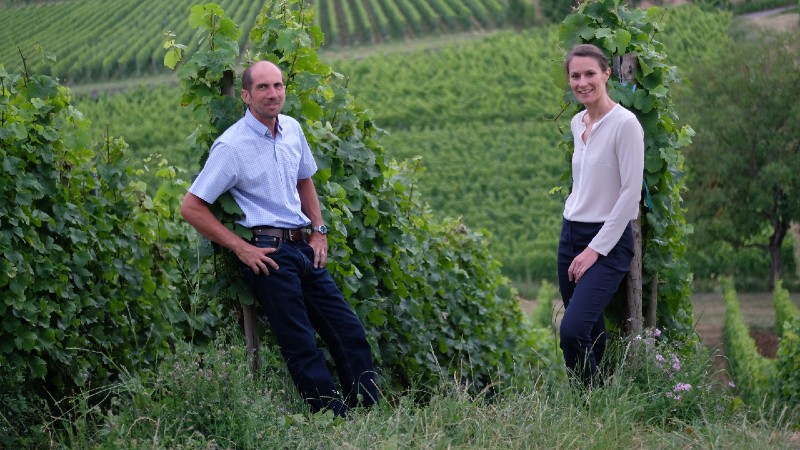 Depuis 14 générations, les Beyer s’attellent à mettre en avant le terroir d’Eguisheim. Christian et Valérie se feront un plaisir de vous faire découvrir leur domaine de 17 hectares, en biodynamie depuis 2016, lors d’un apéro dans les vignes ou directement dans la maison familiale au cœur du village.