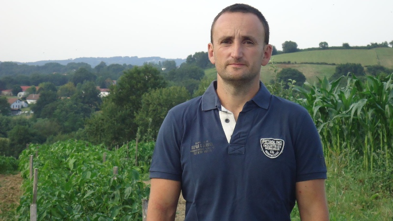 Stéphane a toujours rêvé d’être paysan et il cultive désormais son maïs grand roux et son piment d’espelette sur sa petite ferme de 1,5 hectare. Il a choisi l’agroforesterie et espère pouvoir mettre en place la polyculture et le système triennal prochainement en ajoutant des cochons pour pouvoir continuer à faire vivre la tradition basque en respectant la terre.